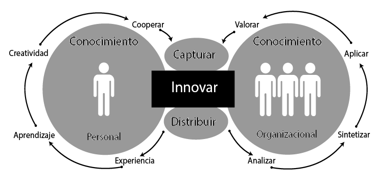 Basados en los principios de Nonaka y Takeuchi, Arambarri Basañez (2014) señala que hoy en día las organizaciones competitivas tienen los objetivos de elaborar e implementar continuamente procedimientos de gestión del conocimiento y entornos colaborativos abiertos que visen la viabilidad de trabajar en proyectos geográficamente dispersos, con equipos externos, a afectos de crear, gestionar y transferir el conocimiento en un único espacio.