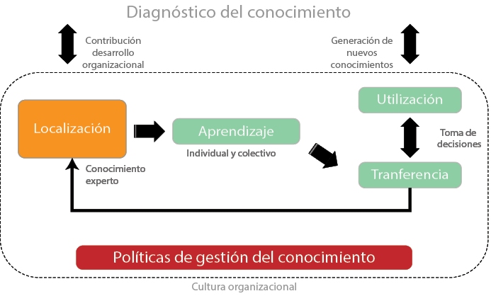 En el ámbito del diagnóstico, se deben considerar estrictamente los diferentes procesos (véase figura 4) que involucran el flujo de conocimiento de los expertos con el fin de determinar la transferencia de lo aprendido a nivel individual y/o grupal.