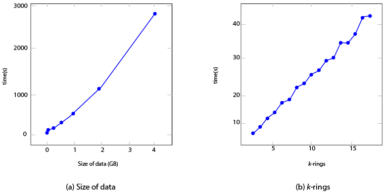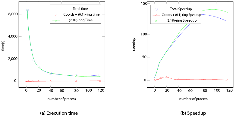 Note. (b) shows the computation time of k-rings with 16 million of vertices and 80 processes.