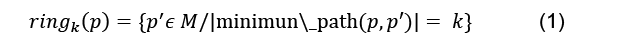 We assume that the length of the edges is one. A neighborhood with radius equal to k is the set formed by the union of all rings with radius . Formally we have: