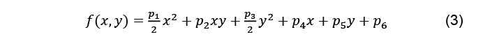 In our experiments, we use the Harris response to get our results. Harris response is a local point-wise descriptor that uses neighborhoods to get the saliency value of each vertex. Given a neighborhood N of a vertex , defined using the concept of k-rings, it is possible to approximate a surface. To address rotation invariance, a fitting plane is computed using Principal Component Analysis (PCA). The neighborhood is rotated with respect to the normal of this plane. Sipiran & Bustos (2011) fit a quadratic surface to the set of transformed vertices. This surface has the following form: