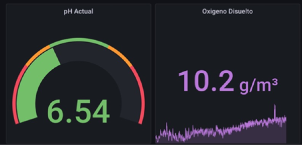 Con respecto a los dashboards generados con la data obtenida, se logró realizar los dashboards en el software Grafana y Amazon Quicksight. Sin embargo, debido a que en la zona no había disponibilidad de internet, la data fue representada únicamente en el software Grafana. A continuación, en las Figuras 20 y 21 se muestran algunos de los gráficos utilizados en los dashboards de Grafana.