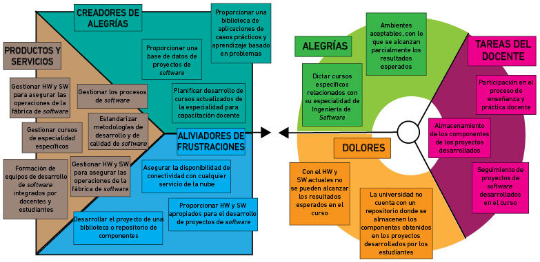La Figura 1 presenta la propuesta de valor de la fábrica de software dirigida a los docentes del Departamento de Ingeniería de Sistemas.