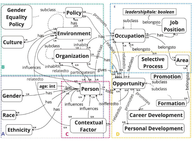 RESUMEN. Este artículo propone una ontología para estructurar datos sobre el liderazgo femenino en la informática en Brasil, con el objetivo de construir una plataforma abierta y colaborativa donde los datos puedan ser recogidos, organizados y clasificados para construir una folcsonomía del dominio. La ontología pretende abordar cuestiones de competencia en el dominio, como los factores contextuales que motivan a las mujeres brasileñas a buscar posiciones de liderazgo en informática, y las políticas que promueven tales oportunidades. La ontología propuesta puede beneficiar a varios usuarios, entre ellos profesionales femeninas de la informática, líderes, investigadores y responsables políticos.