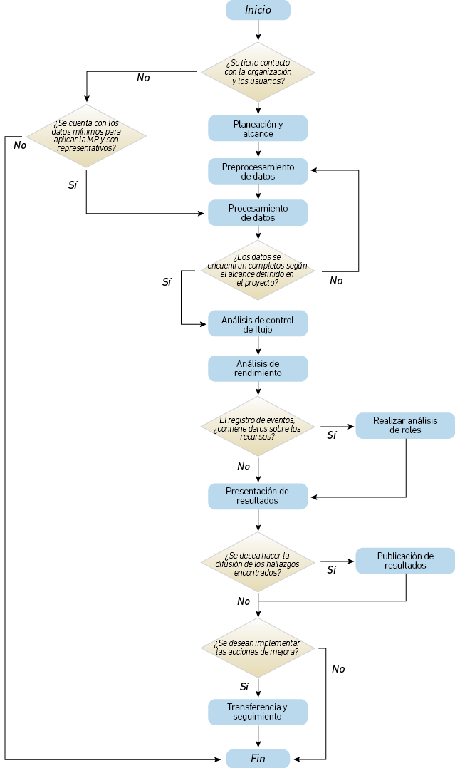 La MP, a través de sus técnicas, permite a las organizaciones realizar un escaneo de sus procesos de negocio para comprobar con mayor rigurosidad su cumplimiento, diagnosticar problemas e identificar soluciones que faciliten acciones de mejora o rediseño y que, al ser implementadas, logren procesos de negocio más eficaces. Por esos motivos, se considera importante que todo proyecto de MP se lleve a cabo con un enfoque metodológico que sirva de guía para que se alcancen los objetivos planteados y se garanticen resultados.
