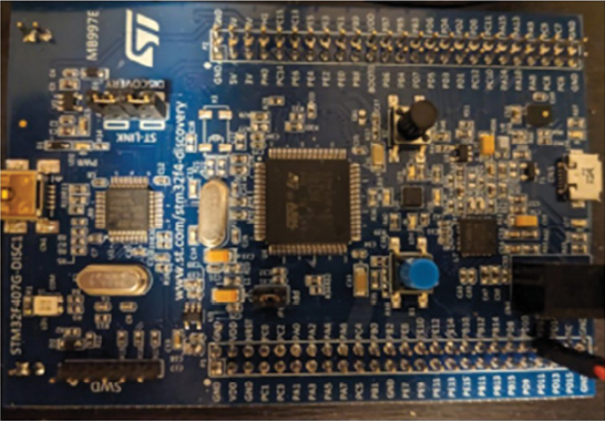 The STM32F407-DISC1 was selected given that an actual embedded target was also desired for this project. According to the manufacturer, the STM32F407VGT6 microcontroller features a 32-bit Arm Cortex-M4 with an FPU core, 1-MB of Flash memory, and 192 KB of RAM (STMicroelectronics, 2024a). See Figure 2.