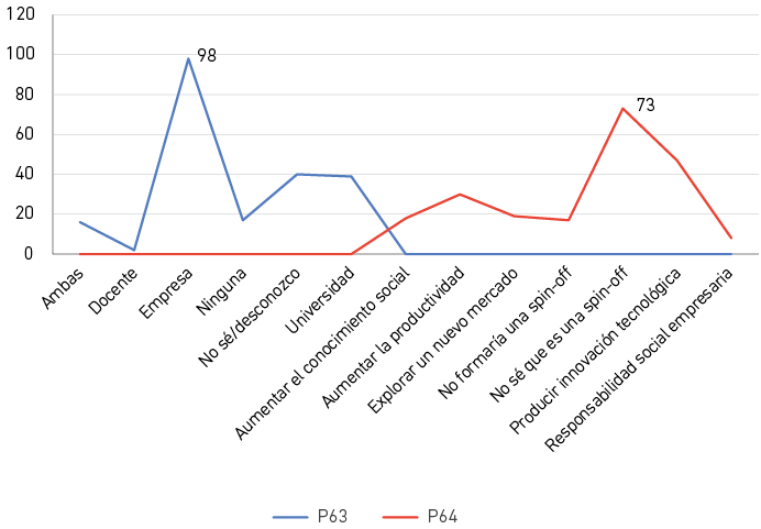 A la pregunta acerca de cómo se originan los vínculos entre empresas y docentes, se observa que la mayoría refiere principalmente a las mismas empresas. Sobre cuál sería su principal motivación para formar una SO, una gran parte se inclina (entre muchos otros ítems) por la producción de innovación tecnológica. Sin embargo, la mayoría de entrevistados indica no conocer lo que es una spin-off.