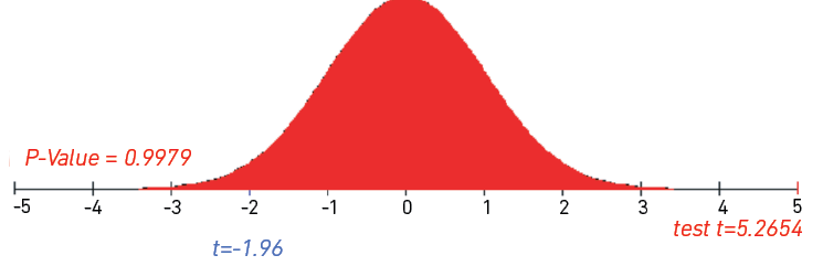 Illustration of the results of hypothesis testing related to passive asset management using t-test