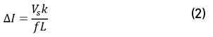 En la ecuación (2), ΔΙ es considerada como la corriente de rizo pico a pico, f, como la frecuencia del interruptor o chopper, y L, como la inductancia.