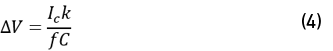 En la ecuación (4), ΔV es considerada como el voltaje de rizo pico a pico, IC, como el valor de la corriente de carga y C, como el capacitor.