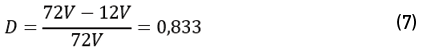 A partir de la ecuación (1), se calculó el valor del ciclo de trabajo, el cual, para nuestros cálculos, se representa por la letra :