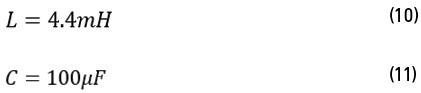 Una vez definido el ciclo de trabajo, se usaron las ecuaciones (3) y (5) para determinar los valores críticos de la inductancia LC y del capacitor. Los valores de estos son los mínimos permisibles para su funcionamiento. Así: