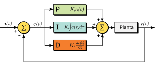 Cuando se dispone del modelo matemático de la planta, es factible aplicar técnicas de diseño para determinar los parámetros del controlador que satisfagan las especificaciones tanto del transitorio como del estado estacionario en el sistema de lazo cerrado (Nise, 2014; Razmjooy, 2024). Para los fines de este trabajo, se ha decidido representar el controlador PID en tiempo continuo utilizando la forma paralela y basándonos en la siguiente ecuación, en función de la transformada de Laplace (Razmjooy, 2024):