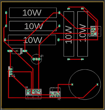 El primer paso consistió en diseñar las pistas del circuito elevador utilizando el software Eagle. Se seleccionaron y ubicaron los componentes necesarios, estableciendo las conexiones eléctricas pertinentes para asegurar un diseño óptimo. Una vez finalizado, se generó el archivo Gerber, que es esencial para la fabricación del circuito impreso. La Figura 10 muestra el diseño esquemático resultante.