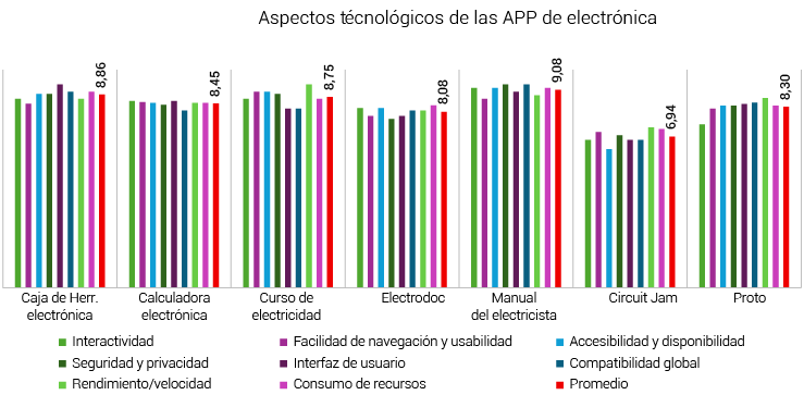 En la Figura 3, se muestra que Circuit Jam tiene los puntajes más bajos, con un promedio de 7,34. Cabe señalar que, al ser un juego educativo, el contenido no se presenta de manera inmediata a diferencia de las bibliotecas de recursos donde el alumno puede acceder fácilmente a toda la información. En cambio, Manual del electricista obtuvo el promedio más alto. Se destacó en adaptabilidad a diferentes niveles de conocimiento, lo cual es relevante para el centro universitario, ya que puede ser útil a lo largo de la carrera y recomendado por los docentes desde los primeros semestres.