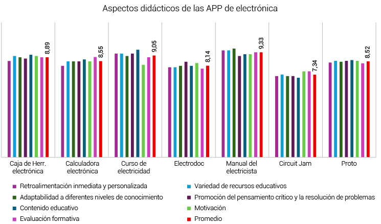 ABSTRACT. The purpose of this research was to explore educational mobile applications of electronics in Spanish to identify those that favor the learning of university students, specifically from the Computer Engineering degree program at the UAEM Texcoco University Center. An evaluation instrument was developed based on technical and didactic criteria based on the constructivist model, prioritizing interactivity, usability, educational content and feedback. The methodology included a literature review on evaluation instruments and the use of mobile applications as self-directed learning tools. The applications were selected through an analysis of their performance. Data were obtained from university students who applied the instrument. It was identified that the application “Electrician’s Manual” was the best rated in its didactic properties with 9.33 points, “Electrodoc” was placed with the lowest score with 8.14. In the technical evaluation also “Electrician’s Manual” was the best rated with 9.08 points and ‘CircuitJam’ obtained the lowest score (6.94), however, it was identified that “CircuitJam” is a didactic game whose properties do not match the properties of non-playful PPPs, so it is necessary to develop specific evaluation instruments for serious games. Seven applications were also highlighted as the most effective, grouped into resource libraries, simulators and games. These tools showed potential to improve the understanding of complex electronics concepts, promoting active learning. The study includes recommendations for their integration in classrooms and suggests future research.