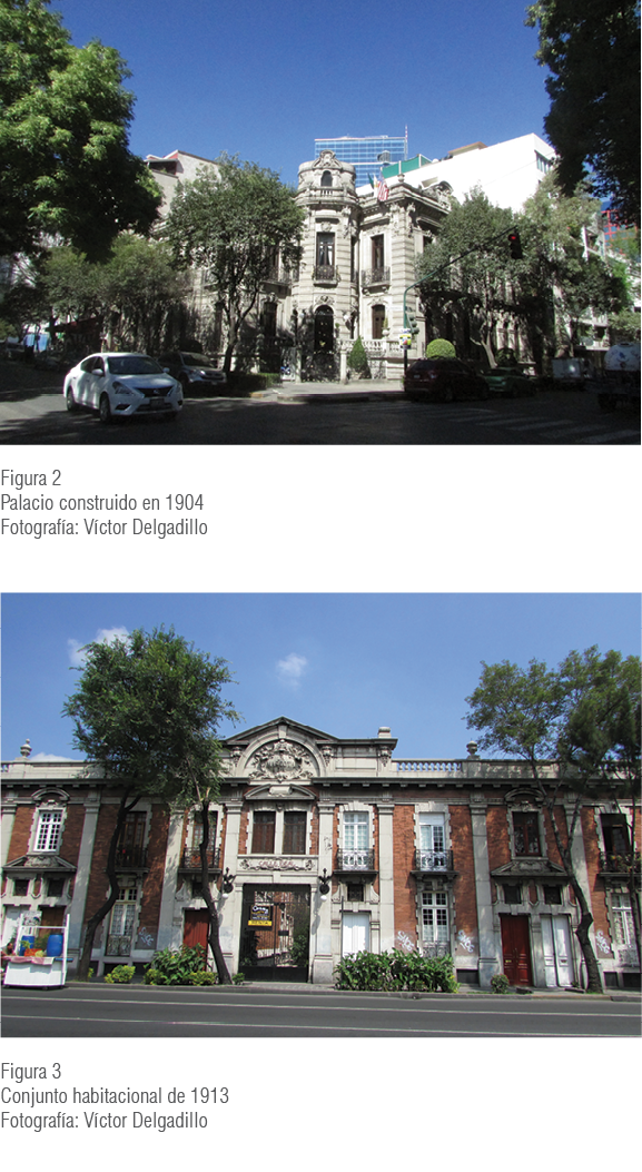 En las nuevas colonias se levantaron construcciones con una arquitectura moderna, opuesta a la arquitectura colonial de patio, que ubicaba la vivienda en el centro del predio y la rodeaba de jardines. El lenguaje arquitectónico era europeo y ecléctico; pero en la década de 1920 se introdujeron lenguajes neocoloniales, art déco y posteriormente racionalistas y funcionalistas. Contrario a lo que generalmente se afirma, desde su origen la Juárez fue una colonia diversa en términos de población y vivienda: la clase burguesa construyó mansiones y palacios en las cercanías del Paseo de la Reforma, pero en el suroriente se levantaron edificios de departamentos y casas modestas para clases medias y para empleados (Segurajáuregui, 2016). En las figuras 2, 3 y 4, se muestran ejemplos de estas arquitecturas.