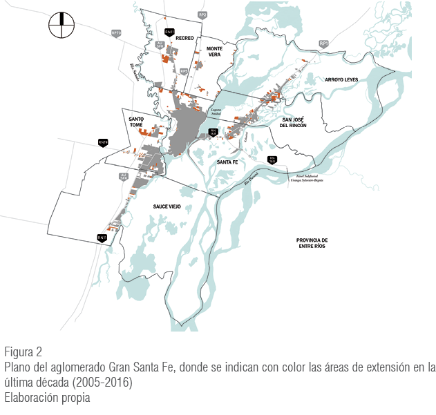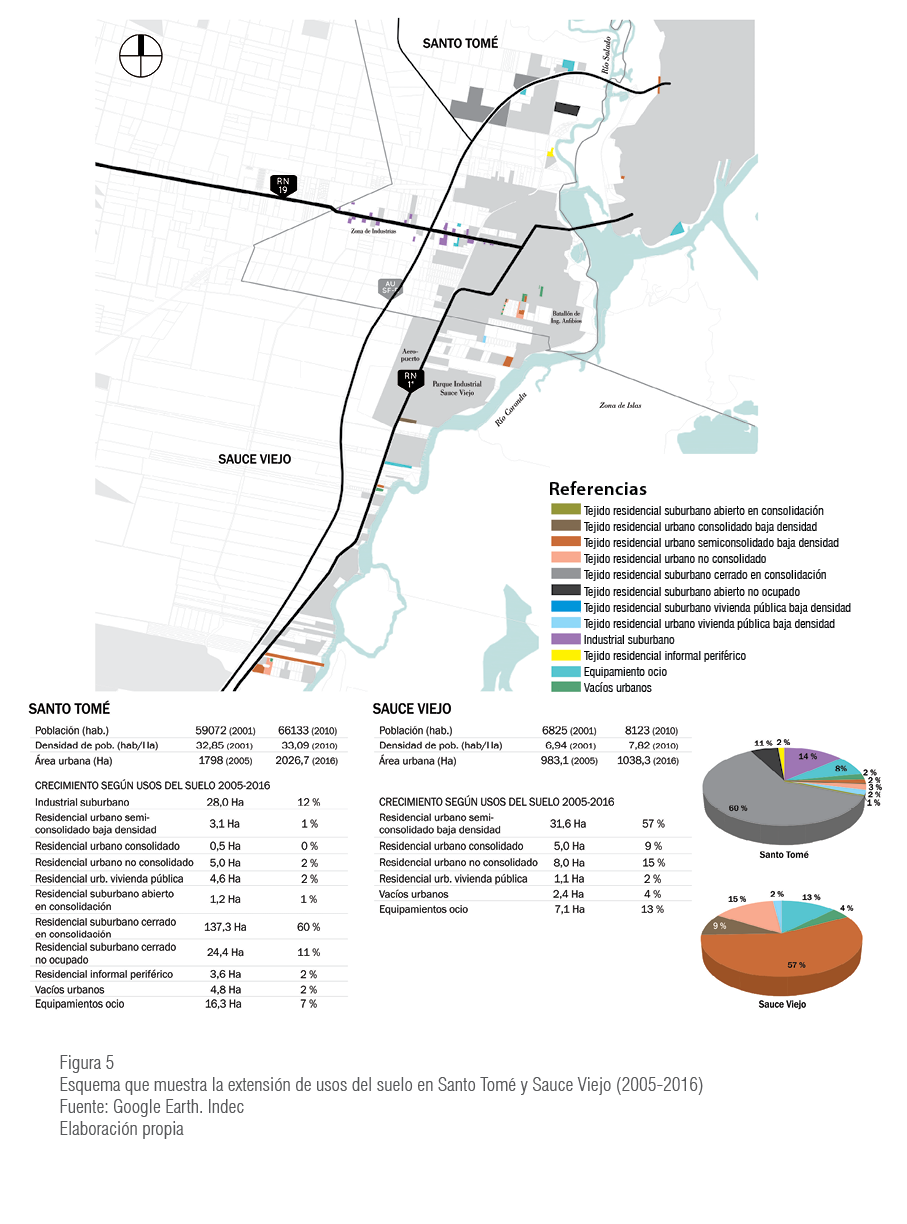 4 La superficie de las plantas urbanas del aglomerado (sin incluir Santa Fe) sumaba 4733,4 Ha en el 2005; y se registró una superficie urbana de 5687,2 Ha para el 2016.