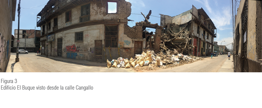 Por la naturaleza de los materiales constructivos, su temporalidad y la falta de mantenimiento generalizado, se identifica el debilitamiento estructural como recurrente problemática: 61% de las construcciones en Barrios Altos presentan humedad, 52 % rajaduras, 41 % pandeos y el 14 % colapsos parciales. Estadísticamente, el 50 % de las viviendas de este sector se encuentran en estado ruinoso o de emergencia. Sin embargo, esto no ha sido una limitación para la sobreocupación de predios, ya que es el lugar con mayor concentración de tugurios4 en Lima Metropolitana: 10 000 viviendas aproximadamente (Centro de Promoción Urbana, 2009).