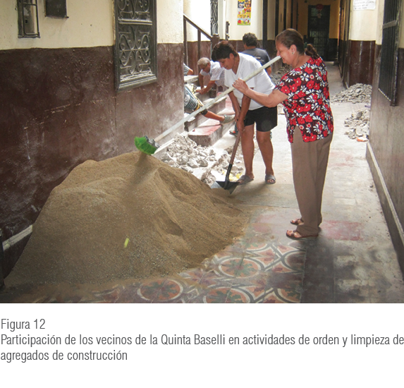 Ante la negativa institucional, la organización vecinal resulta importante como estrategia para el mejoramiento de las condiciones de habitabilidad. Sin embargo, cabe notar que la organización vecinal en Barrios Altos resulta complicada por el flujo constante de inquilinos y la falta de responsabilidad de sus miembros.