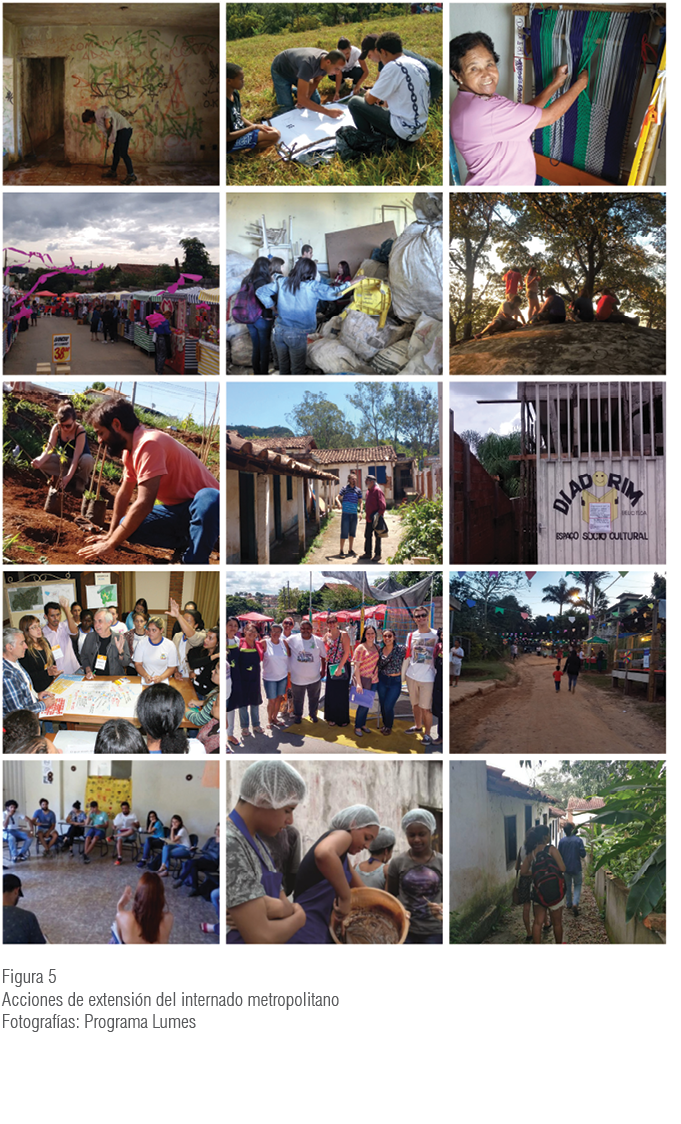 En total ya se han involucrado en acciones de extensión y cursos académicos casi cien alumnos de pregrado y posgrado procedentes de más de diez cursos diferentes. Ellos tuvieron una gran participación, además, relataron cuán importantes fueron la práctica y el contacto con las comunidades locales. En los tres primeros semestres se atendieron diez proyectos socioculturales de diversos municipios de la RMBH y en el cuarto semestre se ampliaron las asociaciones a otros once municipios comprendidos en el proyecto Revisión de los Planes Directores, el cual se presenta a continuación.
