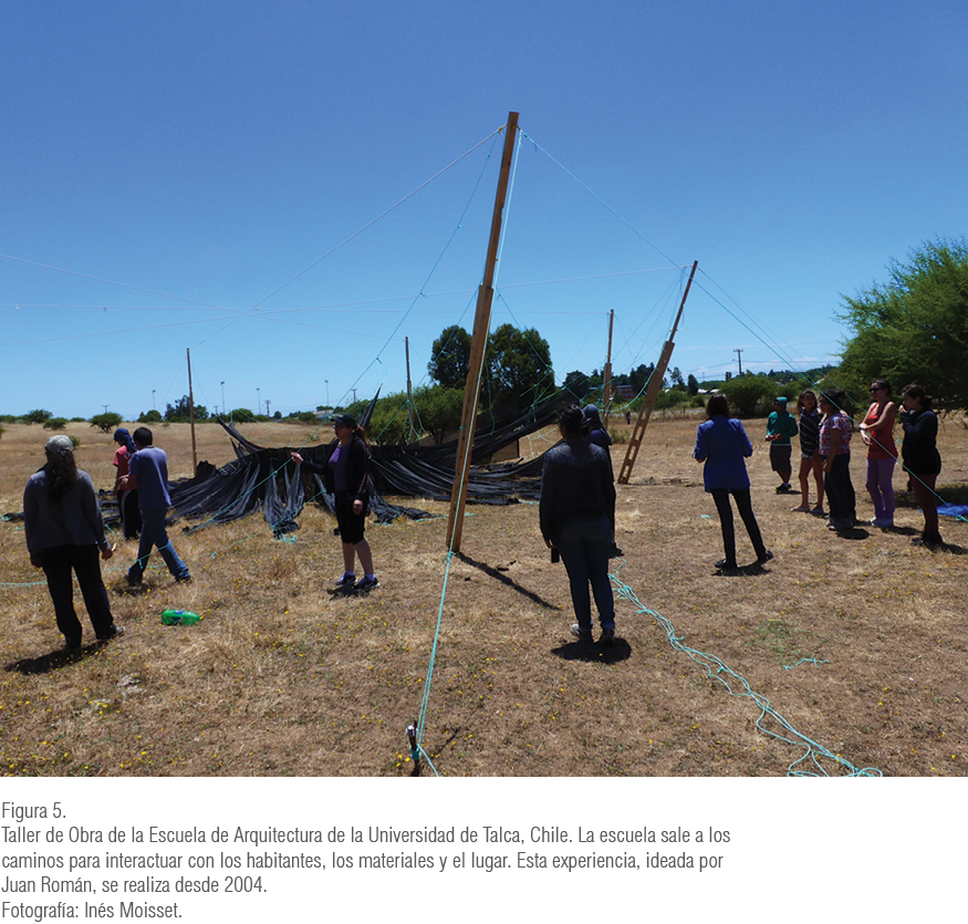 En el caso de la Escuela de Arquitectura de la Universidad de Talca, Germán Valenzuela nos dice que: “el Taller de Obra es un espacio de experimentación, principalmente, para los estudiantes y para los profesores, donde se ponen algunas cosas a prueba, que permitan llevar algunas ideas adelante más allá de lo que se puede hacer en los Talleres o en los cursos teóricos”3. Para conducir este proceso de experimentación se realiza un protocolo de investigación que describe los objetivos, el diseño, la metodología y las consideraciones tenidas en cuenta para la implementación del experimento, además de los procedimientos de observación, análisis, evaluación e interpretación de los resultados. Se detallan los antecedentes y los motivos por los cuales la investigación se lleva a cabo. La existencia de este registro documental es indispensable para que la experimentación cumpla con los requisitos de investigación científica.