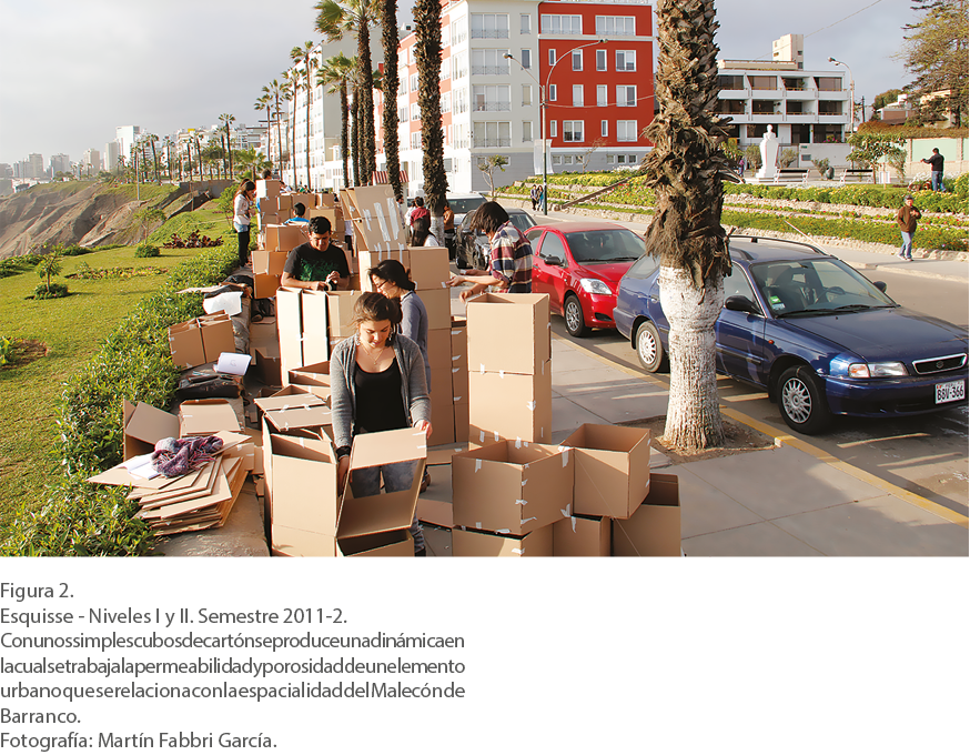 3 El equipo de trabajo de la sección de Taller de Proyectos involucrado en este artículo está compuesto por los arquitectos Martín Fabbri García, Katerine Tapia Vila, Iván Yalán Reyes, Octavio Montestruque Bisso y Ana Rodríguez Ferrari, y conforma una de las cuatro secciones de la Carrera de Arquitectura de la Universidad de Lima.