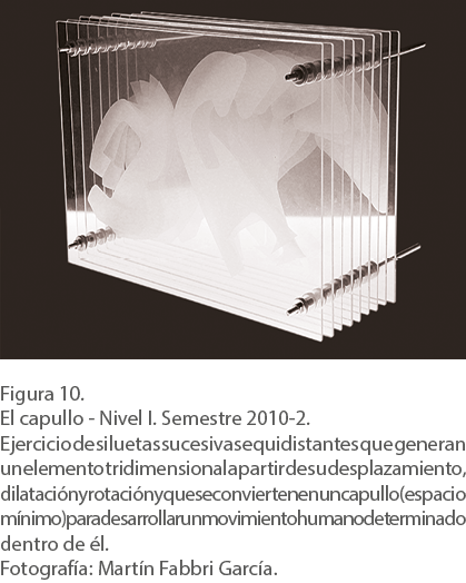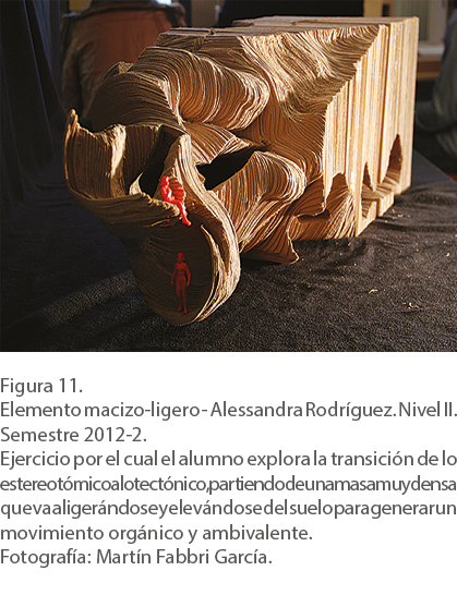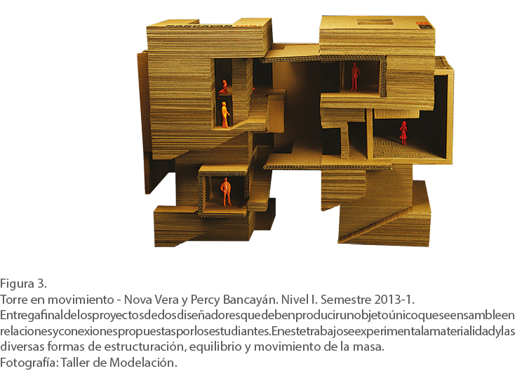 En las siguientes líneas expondremos parte de la metodología de trabajo de uno de los talleres básicos de arquitectura de la Universidad de Lima3. El planteamiento general que se lleva a cabo en el primer año de la carrera de arquitectura considera tres grandes momentos de desarrollo en los contenidos semestrales. En primer lugar, la situación motivacional y previa al proyecto, en donde se desencadenan las pulsiones creativas4