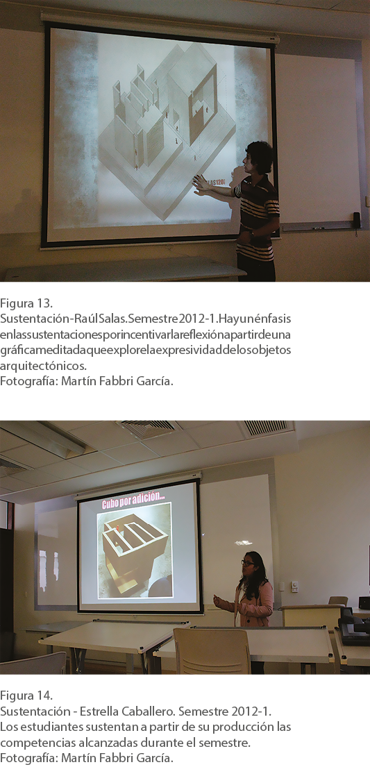 En este ámbito, nuestro interés como docentes de la Carrera de Arquitectura de la Universidad de Lima en el proceso de aprendizaje se basa en la importancia de la exploración paulatina del estudiante en la lógica proyectual, definiendo el rol del docente como guía de este proceso, impartiendo distintas opciones para fomentar una capacidad crítica y de elección del estudiante y resaltar la importancia de la evaluación como mecanismo de autoafirmación del alumno.