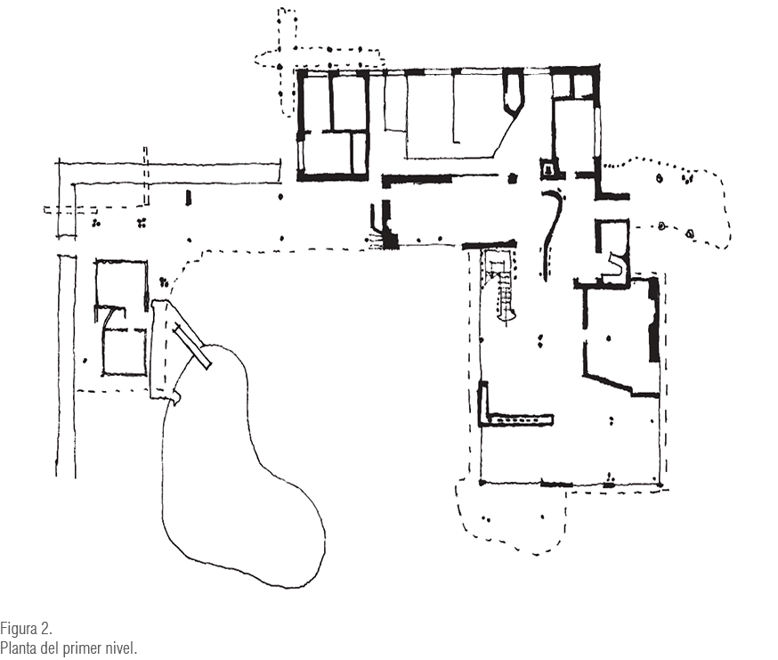 Los elementos presentes en toda la obra, desde las fachadas hasta la parte más privada, van transformándose conforme uno se adentra en los volúmenes y se aleja de la naturaleza, esto se aprecia en las formas y en los materiales que se han utilizado. La piscina tiene una forma orgánica de trazado irregular, al igual que la cubierta de la entrada principal y los escalones que nos llevan al ingreso.