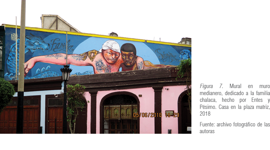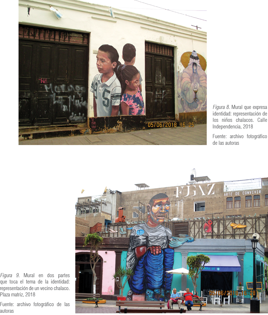 Uno de cada tres vecinos no se siente identificado con el patrimonio arquitectónico, por lo que sí está a favor de los murales, sin importar su ubicación. Las personas defienden y cuidan lo que les pertenece, lo que conocen: los murales deben reflejar su identidad (figuras 7, 8 y 9); es así que entra a tallar la pertinencia de la temática de estos. En las entrevistas, dos de cada tres residentes no entienden el significado de los murales o no encuentran relación entre estos y el lugar en donde viven. Existe, pues, un claro problema de identidad que no se resuelve con los murales equivocados. Esto no quiere decir que se debe limitar el contenido a solo costumbres y personajes del lugar, sino que las obras no pueden ser hechas aleatoriamente y sin pensar qué transmitirá en el lugar donde se realizan. Se podría, por ejemplo, mostrar la realidad multicultural del Perú y, de cierta manera, educar o hacer reflexionar.