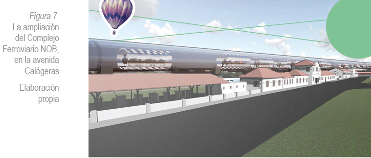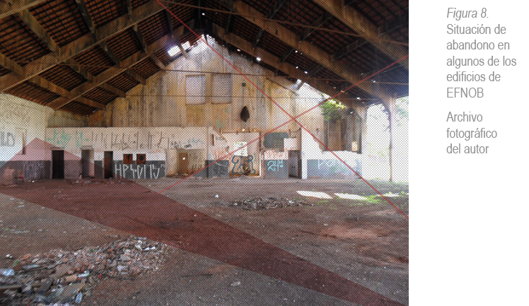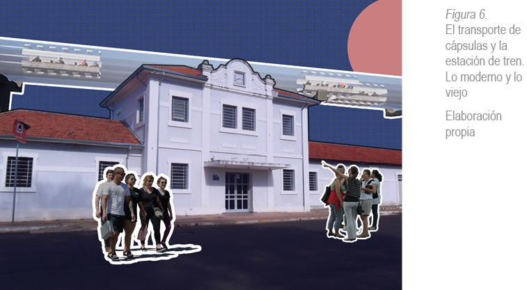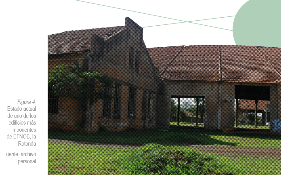 El modo de invención del proyecto surge a partir del momento en que se toman en cuenta las relaciones sociológicas del complejo con el pueblo, de la situación en la que se encuentran algunos edificios de la EFNOB (figura 4), de la memoria de la población y de los antiguos ferrocarriles que todavía sueñan con la reactivación de ese lugar. En este caso, se consideran las palabras de Lavoisier: “Nada se crea, nada se pierde, todo se transforma”, afirmando que podrían crearse nuevas formas de transporte, introduciendo la magnificencia del siglo xxi, que es parte de los procesos tecnológicos que se están introduciendo, acortando distancias y conectando/atrayendo personas para que se apropien de esos lugares.