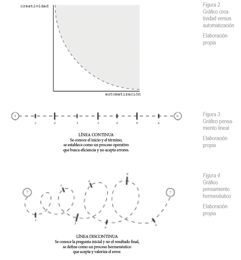El debate en torno a las consecuencias del avance tecnológico ha puesto sobre el tapete las circunstancias sobre las cuales la automatización puede hacerse cargo de una labor históricamente asociada al ser humano, evidenciando que las labores operativas, lineales, predecibles y alejadas de procesos creativos son susceptibles de ser reemplazadas por un proceso automatizado. Por contrapartida, en tareas erráticas, hermenéuticas marcadas por herramientas definidas por la creación, existe menor posibilidad de que se desplace la presencia humana; en conclusión, a mayores herramientas creativas, menos posibilidades, a menores de ellas, más posibilidad (Bakhshi, Frey y Osborne, 2015). El conflicto sistémico, subyace en la alta implicancia que el modelo productivo neoliberal ha generado en las herramientas hermenéuticas propias de los procesos creativos, centrando sus demandas en tareas operativas, lineales y que no aceptan al error como un antecedente válido, creando secuencias programadas donde se conoce el inicio y el término de los procesos, construyendo de esta forma tareas productivas en prácticamente todas las áreas del quehacer humano.