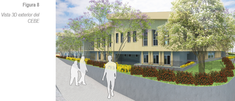 El techo del proyecto sirve como un elemento unificador y se asienta en el parque como una gran sombra. Esta composición consolida la imagen del proyecto (véase la figura 8).
