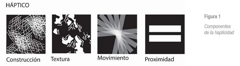 Pero ¿a qué nos referimos cuando hablamos de lo háptico en el espacio? Muchos autores, cuando escriben sobre lo háptico, suelen referirse al sentido del tacto; sin embargo, existen otras aproximaciones. Para el psicólogo Géza Révész, lo háptico se entiende como lo opuesto a lo óptico o percibido por la vista (Dezcallar, 2012). En cambio, Deleuze y Guattari (2004), en su ensayo “Lo liso y lo estriado”, usan el término háptico y no táctil, puesto que este no opone los órganos de los sentidos y abre la posibilidad de que el ojo pueda tener una función que no es óptica. Se entiende que lo háptico implica una percepción que se da dentro de la proximidad, el contacto, y puede abarcar todos los sentidos (Deleuze & Guattari, 2004). Esta idea de proximidad, contacto y movimiento es inherente al espacio háptico. Para conformar una percepción háptica, es tan importante la percepción táctil (a través de la piel) como la percepción cinestésica, a través del movimiento (Gibson & Walker, 1984).