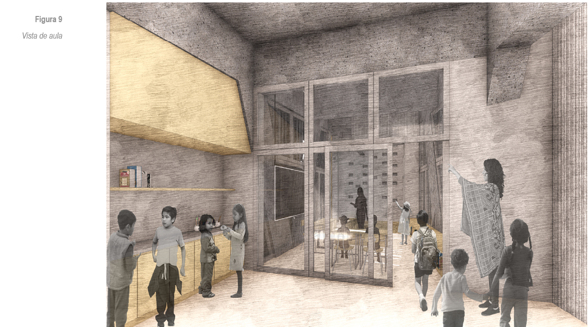 En conclusión, si bien en el pasado se ha respondido desde un enfoque cuantitativo al gran déficit de infraestructura educativa, hoy en día queda claro que es necesario responder desde el usuario, entendiendo el rol activo del edificio en la educación de los niños. Una profunda investigación proyectual enfocada en el usuario debería ser siempre el punto de partida cuando se proyectan espacios educativos. Estos han de responder a las características particulares de comunicación, sentido de orientación y exploración del usuario. Sin embargo, estas estrategias no son excluyentes; al ser usadas en escuelas regulares, podrían representar espacios de exploración, aprendizaje e integración para todos.