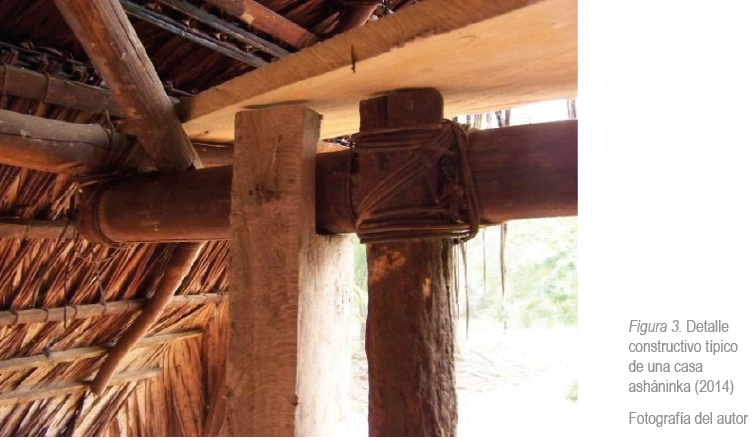 Por ello, es importante analizar cómo la comunidad asháninka ha brindado una respuesta mediante la construcción de sus casas usando materiales de la zona. Las características rescatables de una casa asháninka radican en lo sencillo de usar la madera como pieza constructiva en donde se apila y destaja columnas y vigas para recibir de manera natural el peso del techo fabricado con fibras vegetales como palmichi o palmito, las cuales mejoran el confort al interior de los espacios. En consecuencia, es importante mencionar que los conceptos para la construcción de la casa responden a un confort térmico aprendido de manera empírica; la ventilación cruzada es constante teniendo dos tercios de la casa como zona abierta, la cual sirve como un gran balcón que ayuda a interactuar el interior con el exterior. Por estas razones, es necesario poner atención al ejercicio constructivo de los asháninkas para encontrar mejoras constructivas que, por un lado, puedan ser fáciles de implementar a partir de los materiales locales y, por el otro, que pueda ser replicado por ellos mismos sin necesidad de esperar ayuda externa.