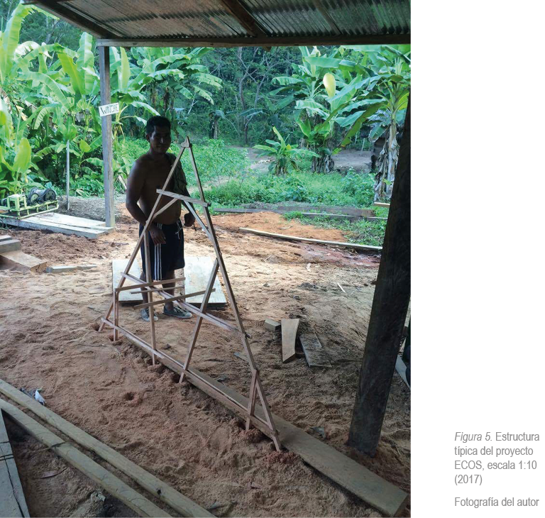 Aunque el Estado planteó prototipos de escuelas para la Amazonía a través del Plan Selva, estas quedan condicionadas para un contexto “urbano” en la selva. A pesar de tomar en cuenta el clima, los elementos estructurales metálicos (vigas y columnas) difícilmente se trasladan hasta comunidades indígenas alejadas, ya que solo se puede llegar mediante embarcaciones pequeñas (peque peque) a través del río en donde la sección es reducida. Inclusive, en caso de que se implemente en zonas de difícil acceso, la comunidad queda condicionada a respuestas constructivas exógenas, lo que puede ser una limitación en su mantenimiento. A todo ello, surgen algunas interrogantes globales: ¿por qué el Estado no desarrolla infraestructuras con materiales locales? Si así fuera, ¿existe industria constructiva que impulse los materiales locales? Si no fuera el caso, ¿será posible fomentar una industria desde lo local o construir una infraestructura con saberes y materiales nativos?