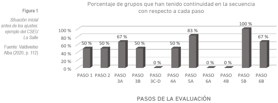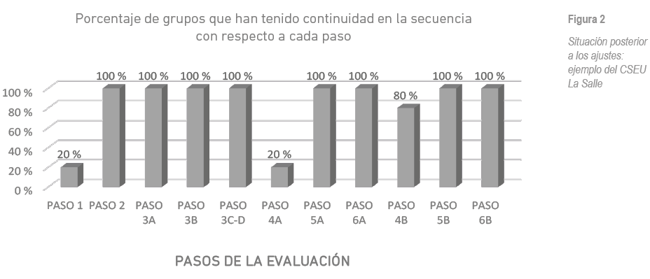 Las figuras 1 y 2 sintetizan uno de los casos investigados, el del CSEU La Salle. La figura 1 indica la situación de partida y la figura 2 muestra la satisfacción de los usuarios prácticamente con la totalidad de los ajustes. Algunos casos de fracturas repetidas volvieron a adecuarse para lograr mejores resultados finales (siempre por sugerencia de los grupos de evaluadores).