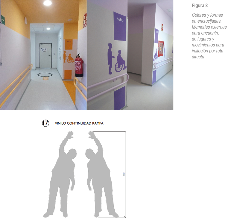 Se trata de guiar a las personas sin palabras, facilitando la deambulación y el direccionamiento, señalando hacia dónde deben ir cuando se buscan objetivos. La identidad y unidad funcional a través de la delimitación de ambientes ofrece mayor riqueza en estímulos y lectura sensorial para disfrutar de lo que se tiene alrededor. Un diseño que comunique, que hable con las personas en un lenguaje comprensible y expresado con elementos compositivos, para que sus respuestas emocionales sean positivas. Esto ayudará al funcionamiento de las personas en sus especificidades y estados, adaptados a sus capacidades de orientación, atención, memoria, movilidad, velocidad, tranquilidad, emociones y salud orgánica.