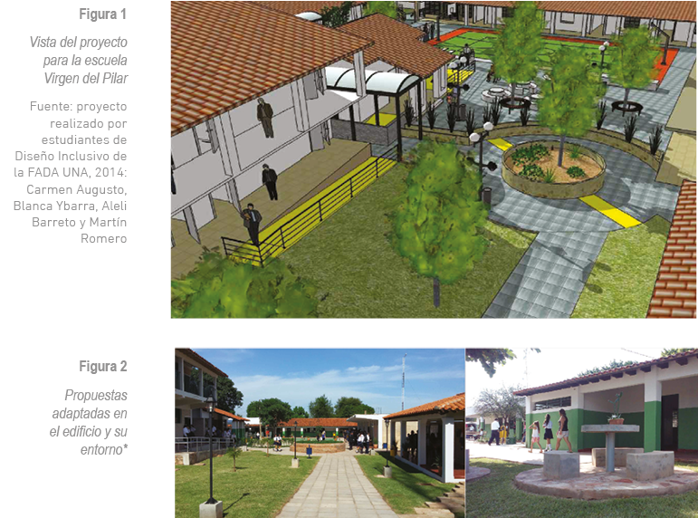 2 Se comparte un enlace de visualización de la escuela Virgen del Pilar, proyecto de inclusión y accesibilidad de las Carreras de Arquitectura y Diseño Industrial de la FADA UNA, 2014-2016: https://www.facebook.com/1183055214/videos/10206494056048504/