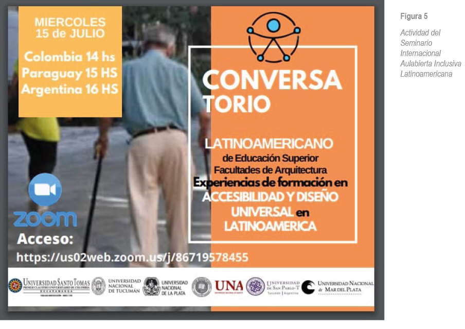 Tema 4. Procesos de internacionalización 2020: Seminarios Aulabierta Inclusiva: FADA UNA, Paraguay; UNLPLATA y UNTUCUMAN, Argentina; y Universidad Santo Tomás de Bucaramanga, Colombia