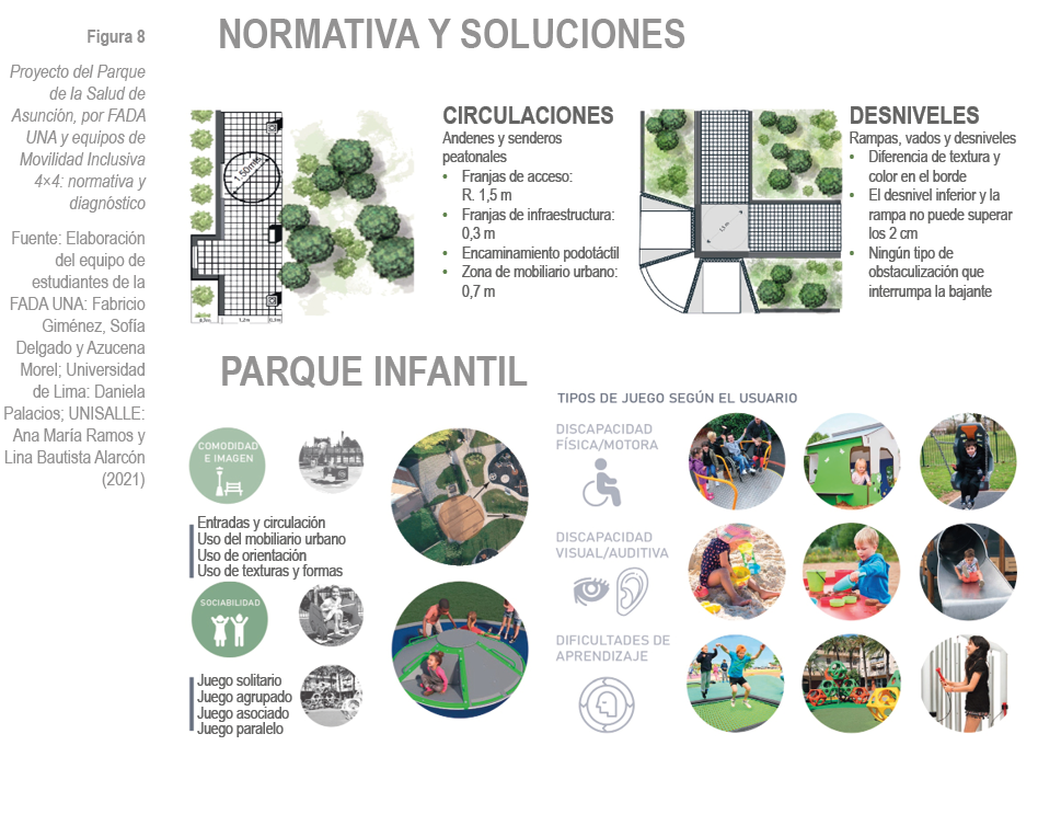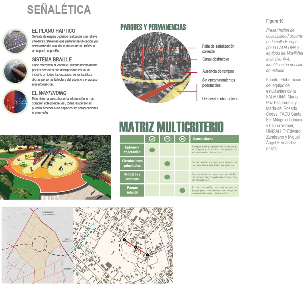 Por tanto, con las acciones implementadas, seguimos en la línea definida en la propuesta didáctica inclusiva de la FADA UNA, que permite la aplicación de criterios de diseño inclusivo y de incidencia social relevante en el ámbito de la accesibilidad universal en Paraguay, con la gestión del diseño inclusivo y su implementación en relación con las políticas nacionales (Gobierno Nacional de Paraguay, 2014).
