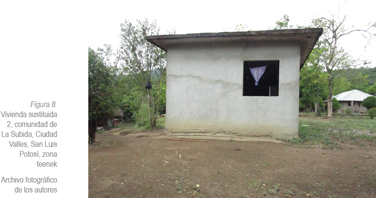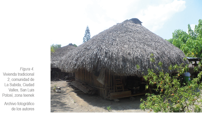 En la visita de campo se pudo identificar las diferentes tipologías que se encuentran en las comunidades de la zona teenek, área rural del Municipio de Ciudad Valles, San Luis Potosí (México), así como también los sistemas constructivos y técnicas que aún perduran; sin embargo, se están introduciendo nuevos materiales y sistemas constructivos que están impactando sobre la tradición constructiva.