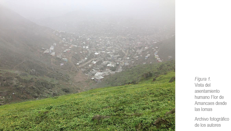 Actualmente, un caso alarmante de asentamiento (véase la figura 1) en ladera en condiciones de depredación natural, olvido de la memoria histórica y un indebido sentimiento de apropiación es el que se desarrolla en las laderas de las lomas de Amancaes, en el distrito del Rímac, donde la dinámica presenta una serie de conflictos internos, que van desde la marginación y segregación de la población frente al resto de la ciudad, hasta el tráfico de terrenos en las laderas, que atenta contra el medio natural.
