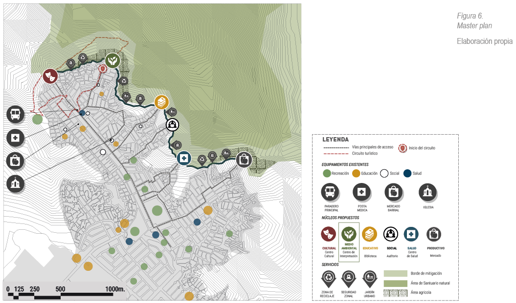Esto quiere decir que las estrategias planteadas en el borde representarán un impacto contundente en el ordenamiento territorial (morfología) y la interacción sociocultural que este generará, de modo tal que fortalezcan los lazos entre las lomas y la comunidad. Es necesario, además, que el proyecto se sensibilice con las necesidades que demanda la población, para mejorar la calidad de vida. Por eso, se requiere diversificar su radio de acción a través de núcleos funcionales, ubicados estratégicamente para que respondan a las necesidades ecológicas, de accesibilidad y equipamiento.