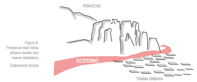 2 El ecotono es definido por Clements (1905) como una intersección entre dos ecosistemas distintos, donde los procesos de intercambio son evidentes. El efecto del ecotono implica una mayor riqueza en el área con respecto a los ambientes adyacentes, el cual puede definirse como un nuevo hábitat diferente. El ecotono urbano, según Cuesta Beleño (2012), hace referencia a territorios relacionados con lo emergente o espacios de transición en diferentes escalas reconocidos por su potencial de cohesión y adherencia hacia otros territorios, y por su conformación sociocultural; dichos ecotonos urbanos se encuentran constituidos por elementos urbanos, ambientales o socioculturales que provienen de las estructuras urbanas contiguas, por lo que expresan un carácter dual de dependencia e independencia.