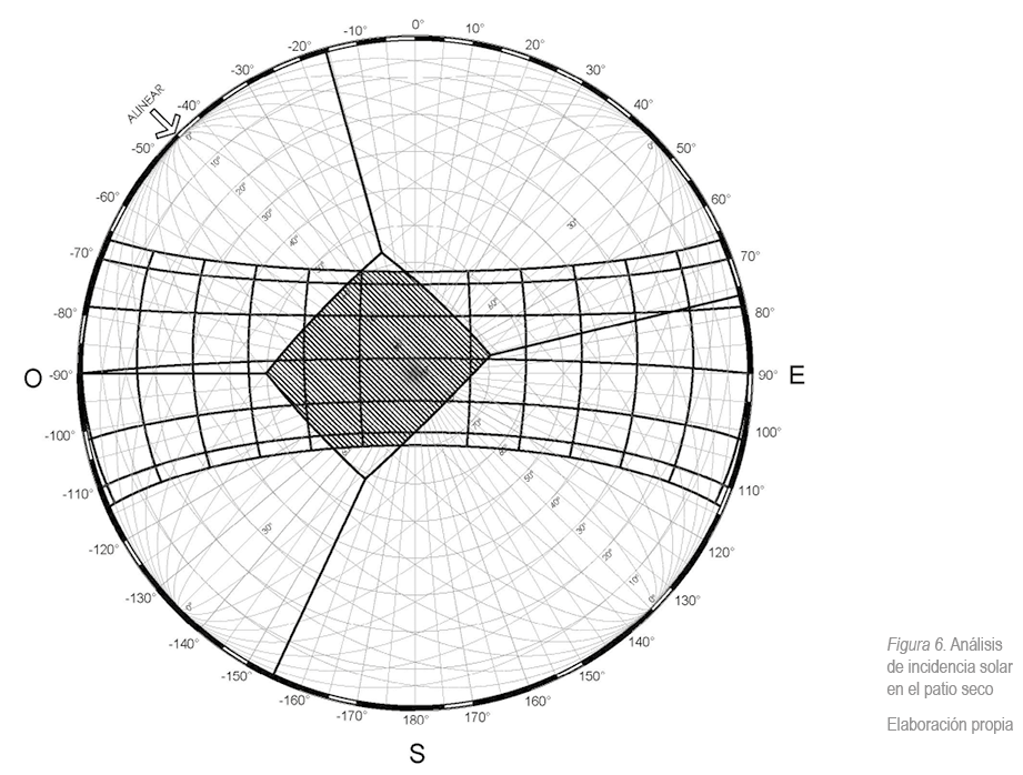 El gráfico solar contiene una proyección esférica del recorrido por meses y horas. Nos da un patrón del recorrido solar y nos permite hallar la posición específica del sol en cualquier momento del año. Este gráfico será útil para analizar la iluminación natural dentro de los ambientes del edificio y garantizar la iluminación natural o sombra según se necesite.