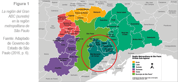 El problema de las áreas industriales en la región del Gran ABC paulista, territorio con presencia industrial históricamente consolidada en el área metropolitana de la ciudad de São Paulo, Brasil, generó un gran debate y constituyó un importante desafío, principalmente, a partir de la década de 1990. Las siglas ABC provienen de las tres ciudades que formaron originalmente la región: Santo André (A), São Bernardo do Campo (B) y São Caetano do Sul (C). A estos se incorporaron, después, Diadema, Mauá, Ribeirão Pires y Rio Grande da Serra (véase la Figura 1).