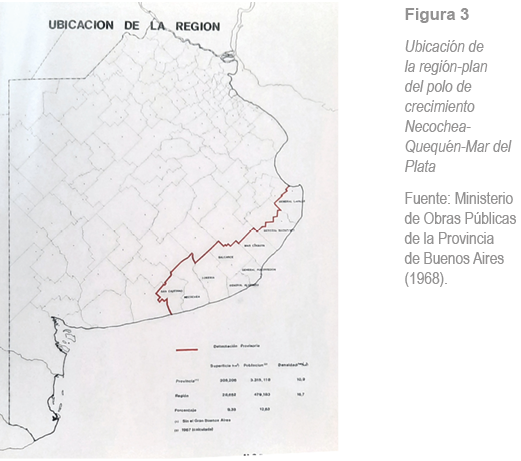 Al momento de caracterizar la región, el ministro de Obras Públicas provincial, Ingeniero Pérez Pesce, luego de plantear que “el gobierno de la provincia de Buenos Aires convoca hoy a todos los sectores de la actividad regional para iniciar los trabajos del operativo Polo de Crecimiento y Desarrollo Necochea-Quequén-Mar del Plata” (MOP, 1968, p. 17). Al demarcar la región, indica que